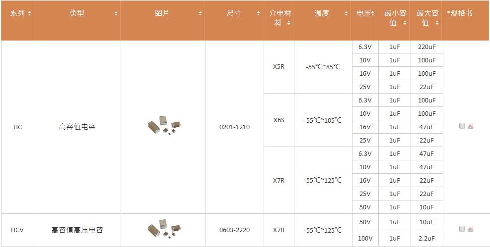 產品系列:國巨高容值貼片電容HC/HCV系列