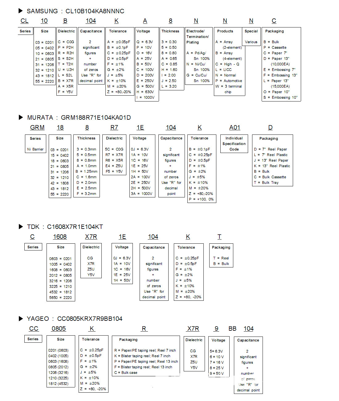 TDK貼片電容識別型號:
