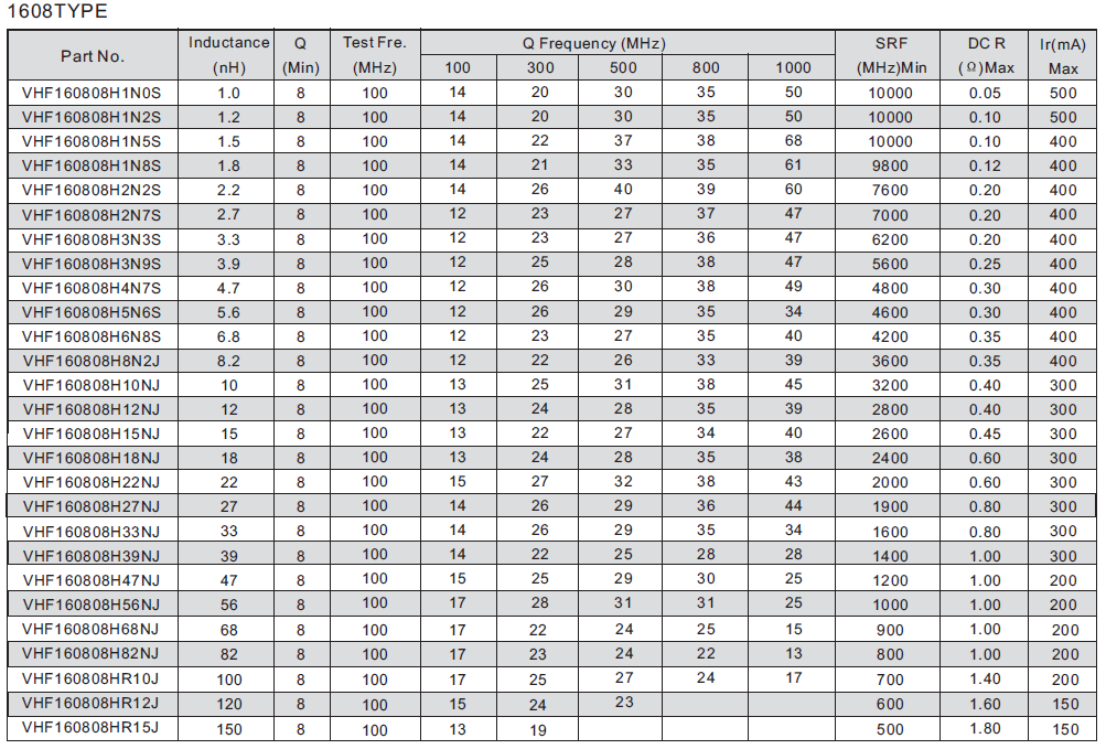 電感范圍:1nH~220nH