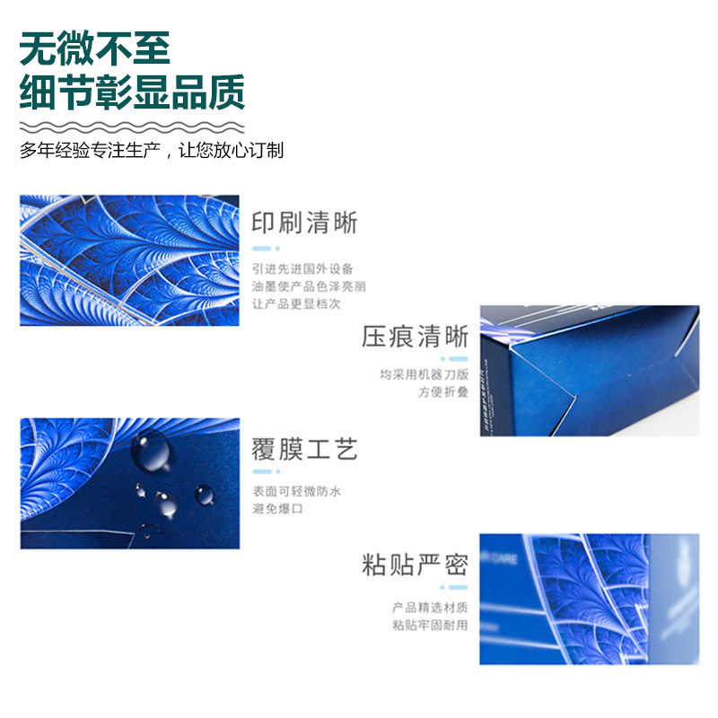 常用工藝:覆膜(啞膜、光膜)、壓紋、凹凸印、局部uv、燙銀、燙金、印專色(PANTONE色)、鏤空、鐳射、打孔、疊印、絲網(wǎng)印、透印、過光油、啞油等