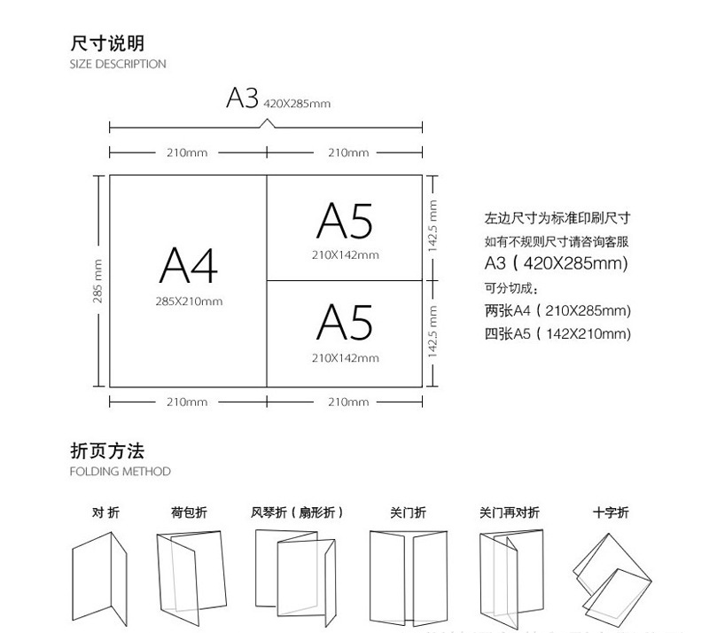 印刷品尺寸有:成品尺寸和印刷尺寸兩種,成品尺寸是最終產品的尺寸,成品尺寸向四周各加3mm